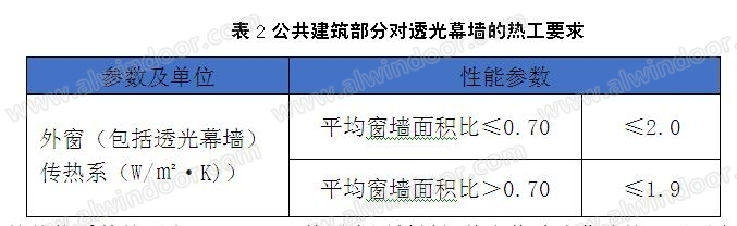 以《杭州市(近)零、超低能耗建筑示范項(xiàng)目關(guān)鍵技術(shù)要求》為例,文件對(duì)居住建筑和公共建筑的主要圍護(hù)結(jié)構(gòu)熱工性能進(jìn)行了要求。其中公共建筑部分對(duì)透光幕墻的熱工要求見表2。
