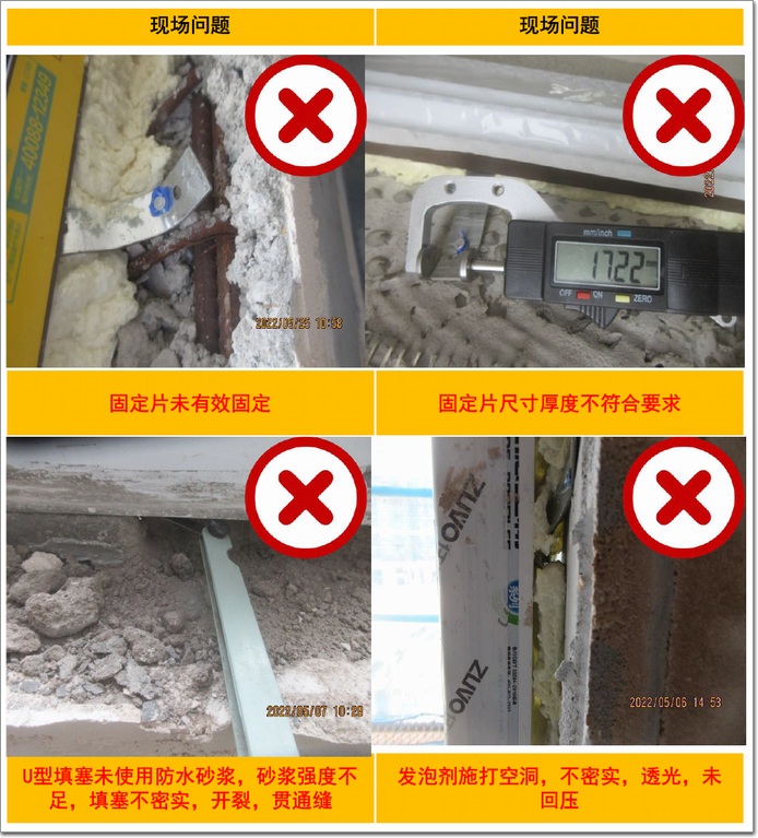門窗框與主體結(jié)構(gòu)U型填塞塞縫質(zhì)量、發(fā)泡膠填充質(zhì)量