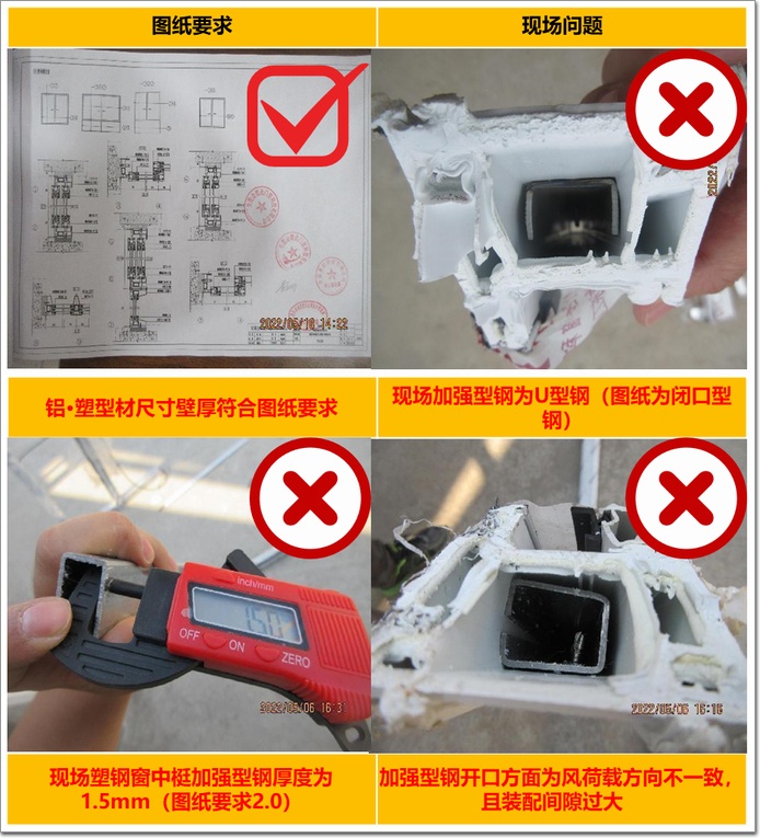 項目貨量區(qū)每批型材進場嚴格按圖及封樣驗收,嚴禁不合格材料進場。