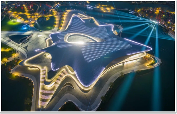 項目位于成都市郫都區菁蓉湖畔,是第81屆世界科幻大會的主會場。在科幻館3樓C區平臺,引入光伏建筑一體化技術,采用了后中空結構的碲化鎘發電玻璃作為屋頂裝飾面材。作為活動開閉幕式和雨果獎盛典的舉辦處——雨果廳的屋頂,充分考慮了建筑的節能需求。同時,作為屋面裝飾的碲化鎘發電玻璃還能帶來每年約1.75萬度的清潔電力,相當于每年減少9.73噸的二氧化碳排放量,用綠色科技賦能建筑,讓原本耗能的裝飾屋頂變成了可以創造清潔能源的多功能屋頂。