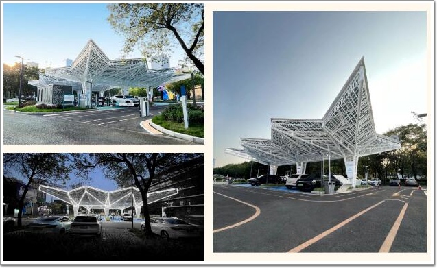 該項目為西南地區首個“光儲充放”一體化停車場,創造性地將碲化鎘發電玻璃的光伏建筑一體化技術融入停車場設計中,將變電站、配電站、光伏站、儲能站、電動汽車充放電站融為一體,實現了“多站合一”。該項目將碲化鎘發電玻璃光伏建筑一體化技術應用在光儲充放停車場設計中,既解決了園區以及周邊車輛充電難的問題,同時也提升了園區的環境品質,帶來了良好的示范效益與經濟價值。該項目總裝機52kWp,預計首年發電量未45048kWh。