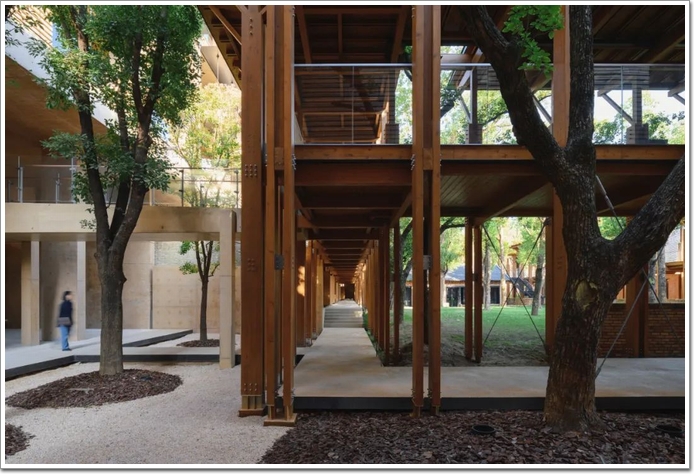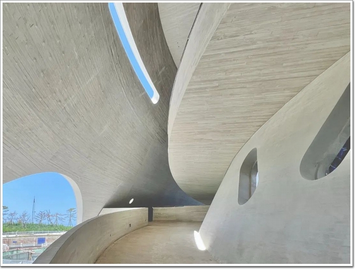 時(shí)光塔是一個(gè)與自然共呼吸的建筑,很多空間夏季不使用空調(diào),讓人感知四季的更迭、自然氣息的流動(dòng),以及戶外、半戶外和室內(nèi)空間帶給人的豐富變化,從一定程度上激活被過度舒適的現(xiàn)代生活鈍化了的知覺。在貝殼般光滑內(nèi)殼包圍下的室外劇場,有著奇妙的聲學(xué)效果。