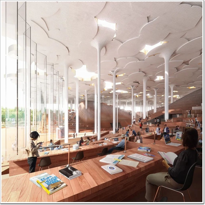 北京副中心圖書館旨在提供一個(gè)以學(xué)習(xí)、知識(shí)共享和開放討論為中心的新型公共空間,并弘揚(yáng)北京豐富的文化。擁有森林般的頂棚,建成后將成為世界上最大的圖書館閱讀空間。