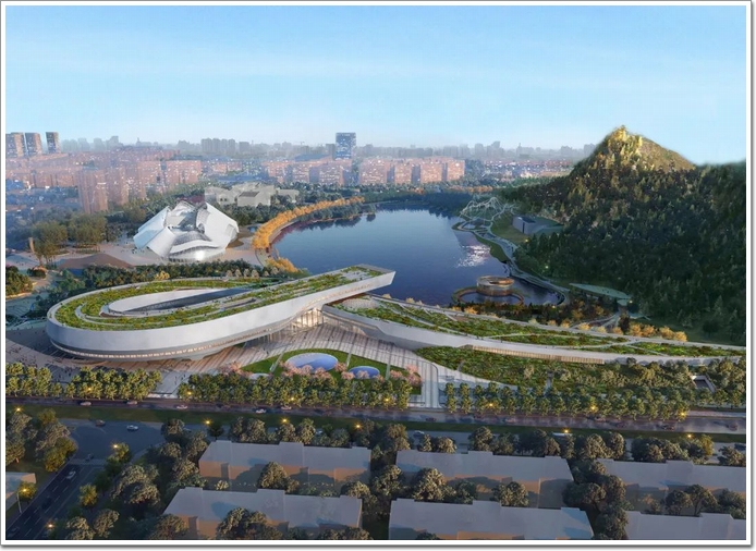 蘇州科技館、工業(yè)展覽館位于“蘇州城市新客廳”獅山公園的中央位置,為特大型展館,建成后將與蘇州博物館西館、藝術(shù)劇院共同構(gòu)成蘇州市的文化科技中心。圍繞一個(gè)帶有水景的中庭,體量在屋頂層面扭轉(zhuǎn)回望,順勢(shì)形成一個(gè)無限循環(huán)符號(hào)。