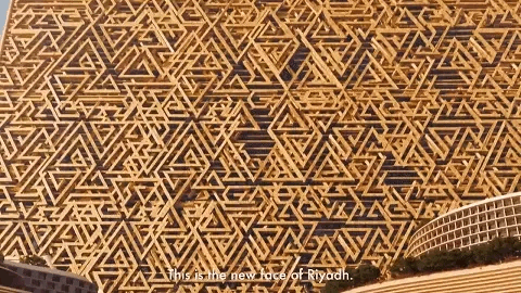 「The Mukaab」外立面由無數(shù)個(gè)重疊交織的三角形圖紋重復(fù)構(gòu)成,該立面受到現(xiàn)代納吉迪建筑風(fēng)格的啟發(fā),極具未來科幻感。