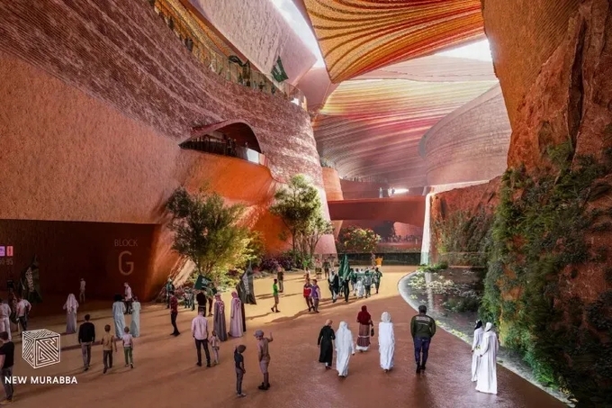 新穆拉巴(New Murabba)是沙特城市利雅得正在建設(shè)中的新城市中心,在這里,正在建設(shè)中的名為穆卡布(The Mukaab)的大型建筑,是一座足夠容納20座帝國大廈的立方體形狀摩天大樓,高400m、寬400m、長400m,項(xiàng)目整體覆蓋約19k㎡的場地。