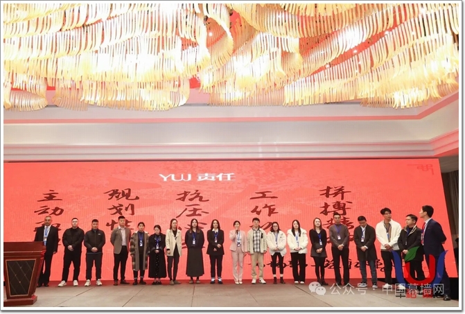 同時,在致辭中胡秘書長還對裕聚幕墻作為“年青企業”代表、作為創新發展的標桿給予了高度評價。這是一股幕墻新勢力、新動能,這是推動行業勇攀高峰的健將,每每在裕聚幕墻的身上,能夠看到行業的活力與激情,門窗幕墻行業正是因為有了這樣的企業和這樣的一群人,才有了希望,才有了未來!期望裕聚幕墻再接再厲,砥礪前行,全力培育新質生產力,盡快成長為一艘行業旗艦!