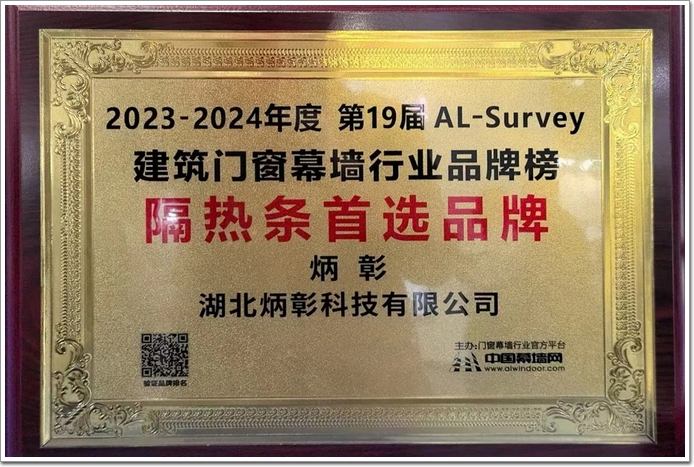 炳彰擁有行業專業的科研隊伍、完善的管理體系和先進的生產裝備,不斷研發貼合市場、引領潮流的新產品。在過去的2023年,炳彰科技升級煥新,持續為市場為行業打造高品質產品及服務,優異的市場表現收獲了行業專家、設計院、顧問公司、房地產企業的高度認可,在第19屆AL-Survey2023-2024評選活動中榮獲“隔熱條首選品牌”大獎。