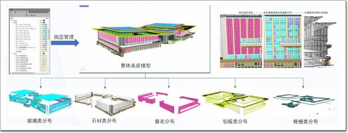 設計階段,通過模型化設計,各幕墻系統(tǒng)整體造型、細節(jié)在平臺中直觀展現(xiàn),設計出圖、材料信息等數(shù)據(jù)被整合入模型,并上傳至平臺,一鍵導出材料下單數(shù)據(jù),顯著提升了設計與制造效率,降低錯誤率。