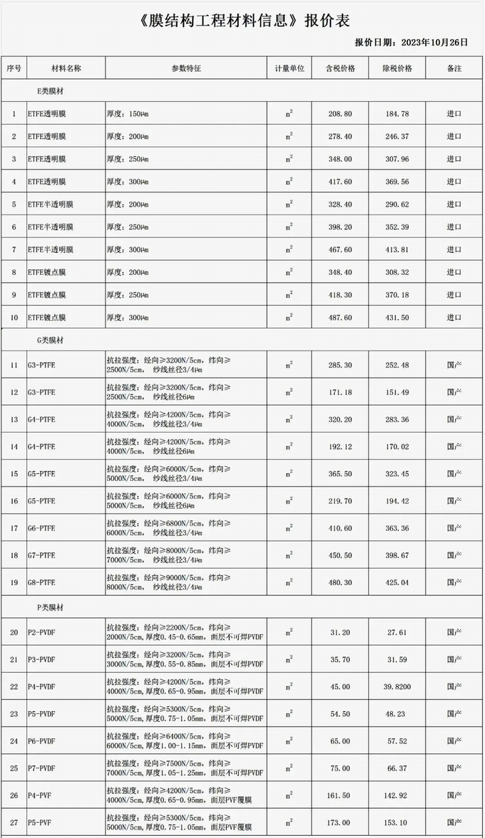 同時,中國鋼結構協會在2022年11月15日發布的《膜結構工程消耗量標準》T/CSCS035-2023中,對建筑膜結構工程給出了清晰的工程標準和定義,這也為國內ETFE膜市場的發展樹立了信心、指明了方向。