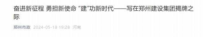 據鄭州市政5月18日《奮進新征程 勇擔新使命 “建”功新時代——寫在鄭州建設集團揭牌之際》消息: