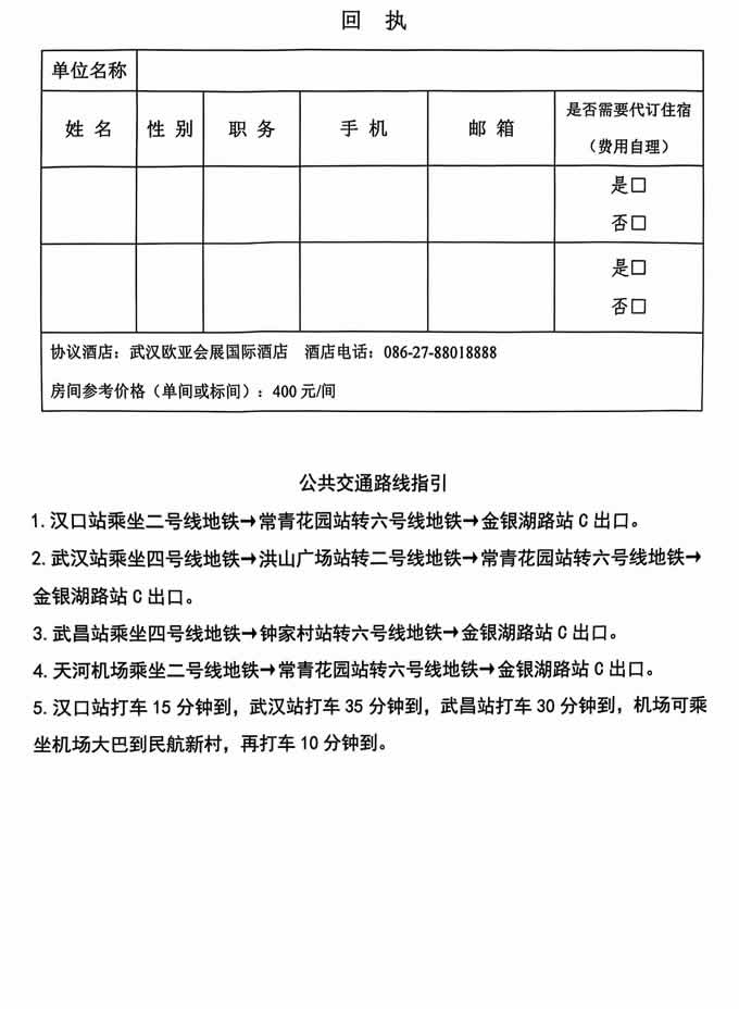 會議及報(bào)到地點(diǎn):武漢歐亞會展國際酒店(武漢市東西湖區(qū)金銀湖路20號)