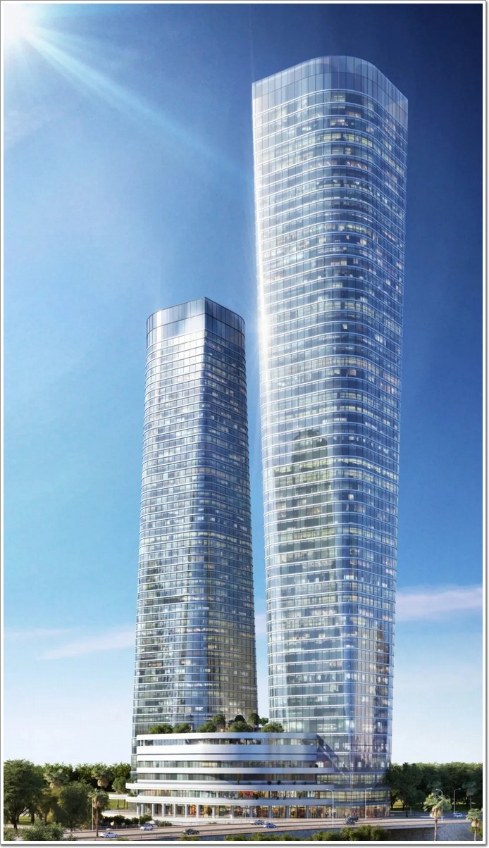 以色列特拉維夫鐵塔兒“超越”項目,由以色列鐵塔兒集團開發,南通達欣集團以色列分公司承建,包括75層和65層兩個建筑群,是集住宅、辦公及商業與一體的多功能綜合體工程,建筑面積達25萬㎡,建筑高度達320m,建成后成為目前“以色列第一高樓”。