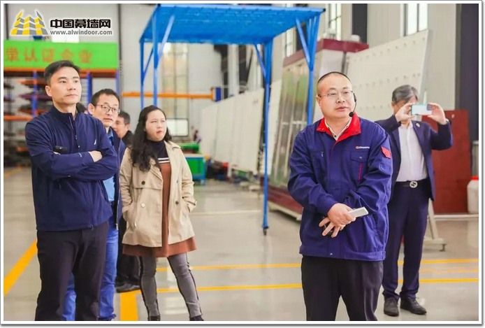 專家團一行近距離觀摩了全自動化生產線,讓專家們深刻感受到“工業4.0”在門窗幕墻制造領域的落地成果。