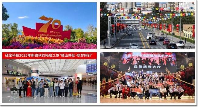 金秋時節,正值新疆維吾爾自治區成立70周年大慶。行走在城市街頭,處處紅旗招展、鑼鼓喧天,喜慶熱烈的節日氣氛深深感染著每一位硅寶人。我們親眼見證這片土地“各民族文化交融匯聚,在中華文化的百花園中綻放絢麗多彩光芒”的生動圖景,親身感受團結奮進、生機盎然的時代脈搏。能夠在這個具有重大歷史意義的時刻來到新疆,全體成員倍感榮幸與喜悅。