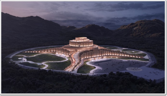 在空間布局方面,項目以太極陰陽圖作為建筑中心,象征著太陽回歸年的陰陽節(jié)律變化,以及因地球公轉與自轉所形成的明暗交替的陰陽兩面。自建筑核心朝著四周逐步延展,八個方向的景觀分別對應著宇宙的八種不同現象,以此構建出獨具特色的空間布局體系,彰顯出獨特的文化內涵與設計巧思。