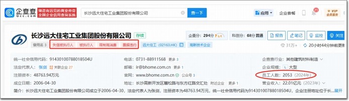 長沙遠大住宅工業集團股份有限公司是國內裝配式建筑龍頭企業,2024年繳納社保員工人數2053人,營業收入22.01億元。
