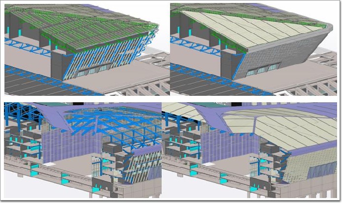 空前規模與復雜系統:作為巨型異形建筑,其外立面及屋面裝飾系統種類繁多,涵蓋了從各類幕墻到金屬屋面、從巨型門(詞條“門”由行業大百科提供)系統到采光頂等十余種子系統,設計與施工協調難度極高。