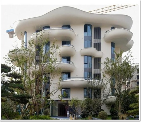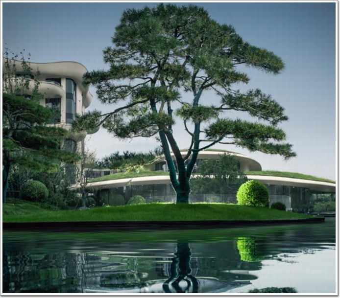 獨(dú)特“靈芝形態(tài)”的有機(jī)流線造型,整體形態(tài)生動(dòng)、蓬勃,打破了傳統(tǒng)直線、方盒子的居住美學(xué);結(jié)構(gòu)、立面與景觀高度融合,在城市水系視廊中呈現(xiàn)出連續(xù)律動(dòng)的“地景式建筑語(yǔ)言”。