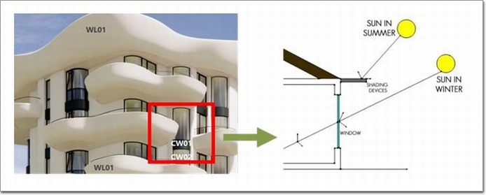 充分考慮陽(yáng)臺(tái)的自遮陽(yáng)對(duì)熱工的幫助,夏天解決直射,冬天引入更多日光。項(xiàng)目最終得熱系數(shù)下降至0.51,這樣可以為用戶選用更加透亮的玻璃。