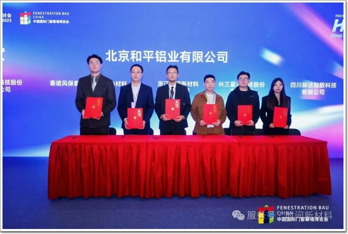 時間膠與北京和平鋁業(yè)有限公司簽約儀式此次對接會的成功召開,不僅為建筑幕墻門窗行業(yè)解讀了“十五五”發(fā)展的機(jī)遇與挑戰(zhàn),更搭建了技術(shù)交流、經(jīng)驗分享與合作共贏的高端平臺。與會者紛紛表示,將以此次會議為契機(jī),聚焦數(shù)智創(chuàng)新、深耕綠色技術(shù)、強(qiáng)化國際合作,共同推動中國從“幕墻大國”向“幕墻強(qiáng)國”邁進(jìn),在全球舞臺上展現(xiàn)中國幕墻的技術(shù)實(shí)力與品牌魅力,推動建筑幕墻門窗行業(yè)順利穿越發(fā)展周期。
