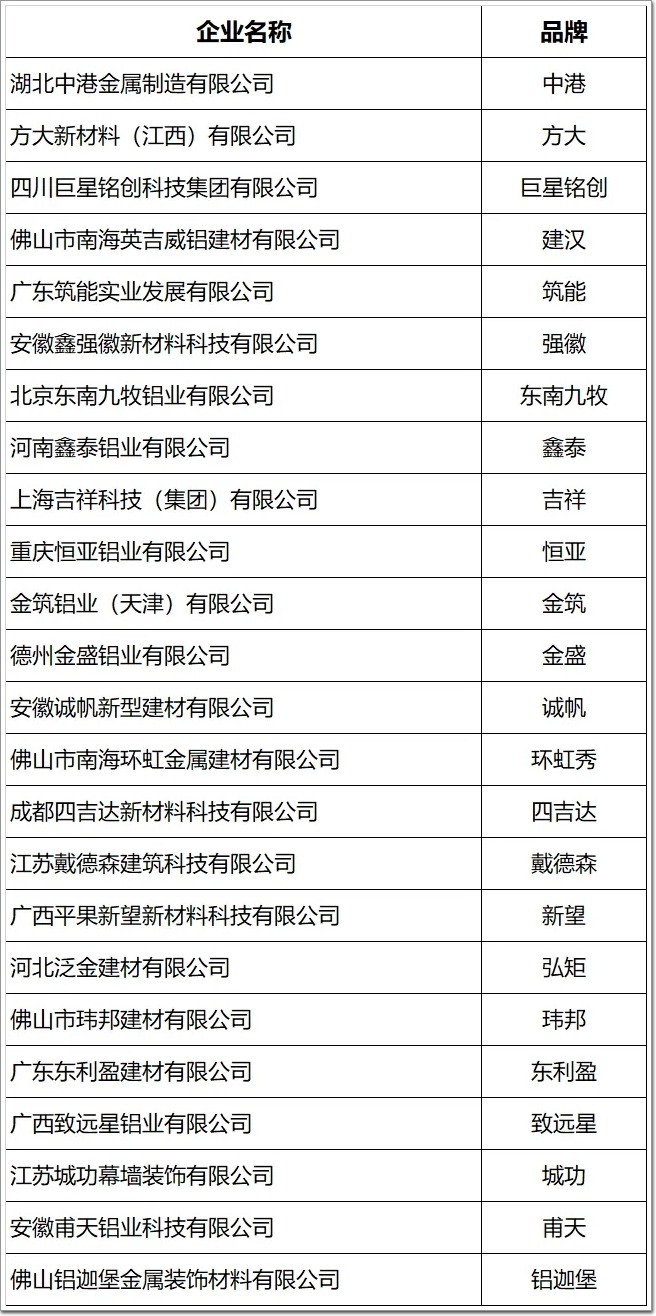 建筑鋁型材企業(品牌)32家: