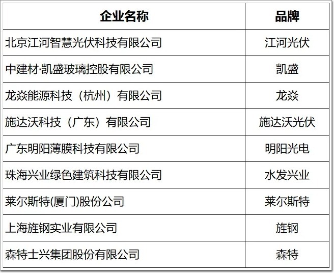建筑光伏產業企業(品牌)|(9家提交數據參與展示):