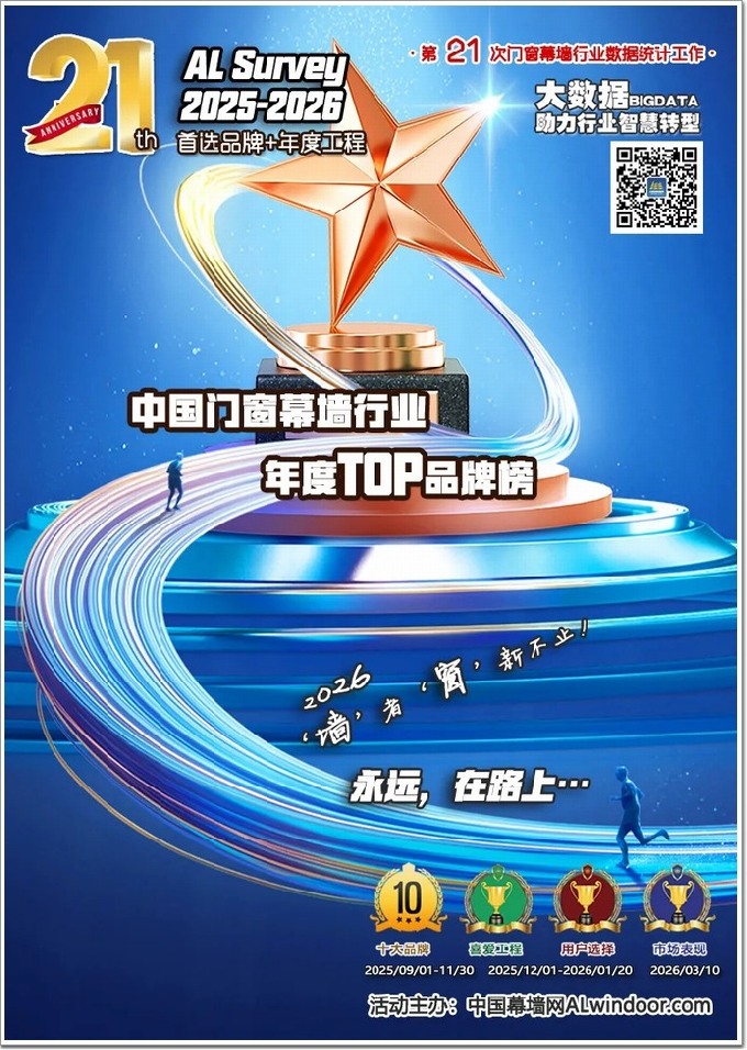 ALSurvey助推品牌價值提升,推動門窗幕墻行業高質量發展,助力產業鏈發現最好的企業、推薦最佳的品牌、選用最優的產品。從困難的2024“為愛堅守”,到至暗的2025“熱愛與堅持、創造與責任”,再到充滿期待的2026年,我們一起蓄勢再出發——沒有退路!唯有“窗”新,才是“墻”者之路……
