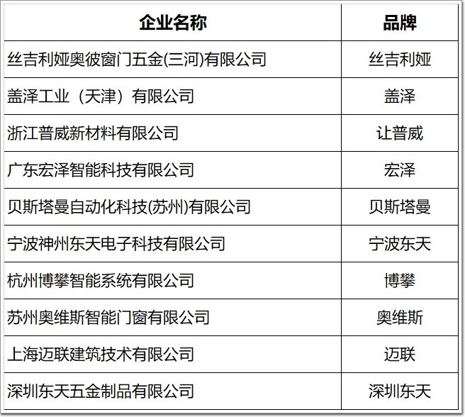 門窗生產企業(品牌)30家: