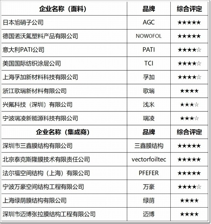 ETFE企業(品牌)|(14家提交數據參與展示):