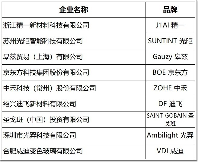 電致變色玻璃(詞條“變色玻璃”由行業大百科提供)企業(品牌)|(9家提交數據參與展示):