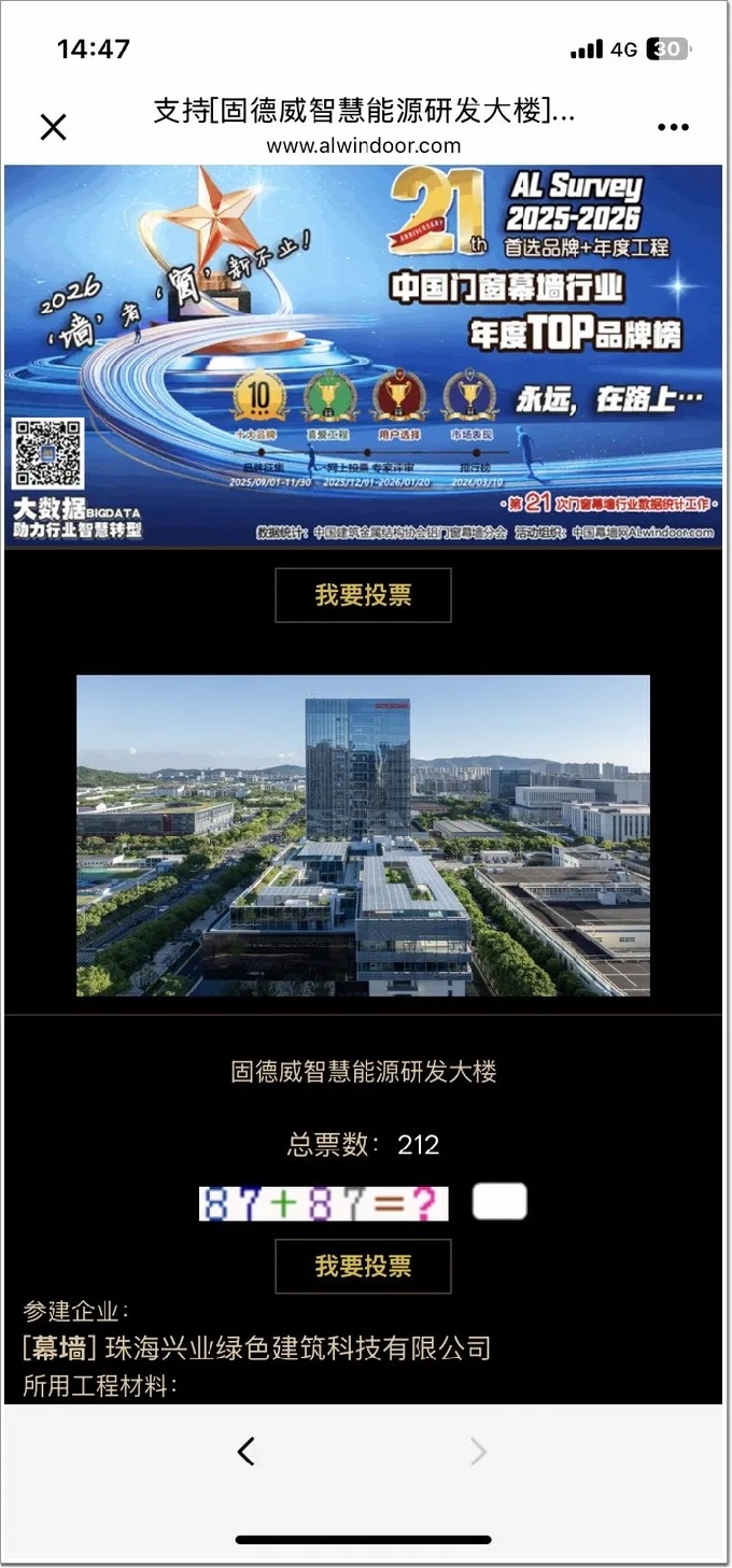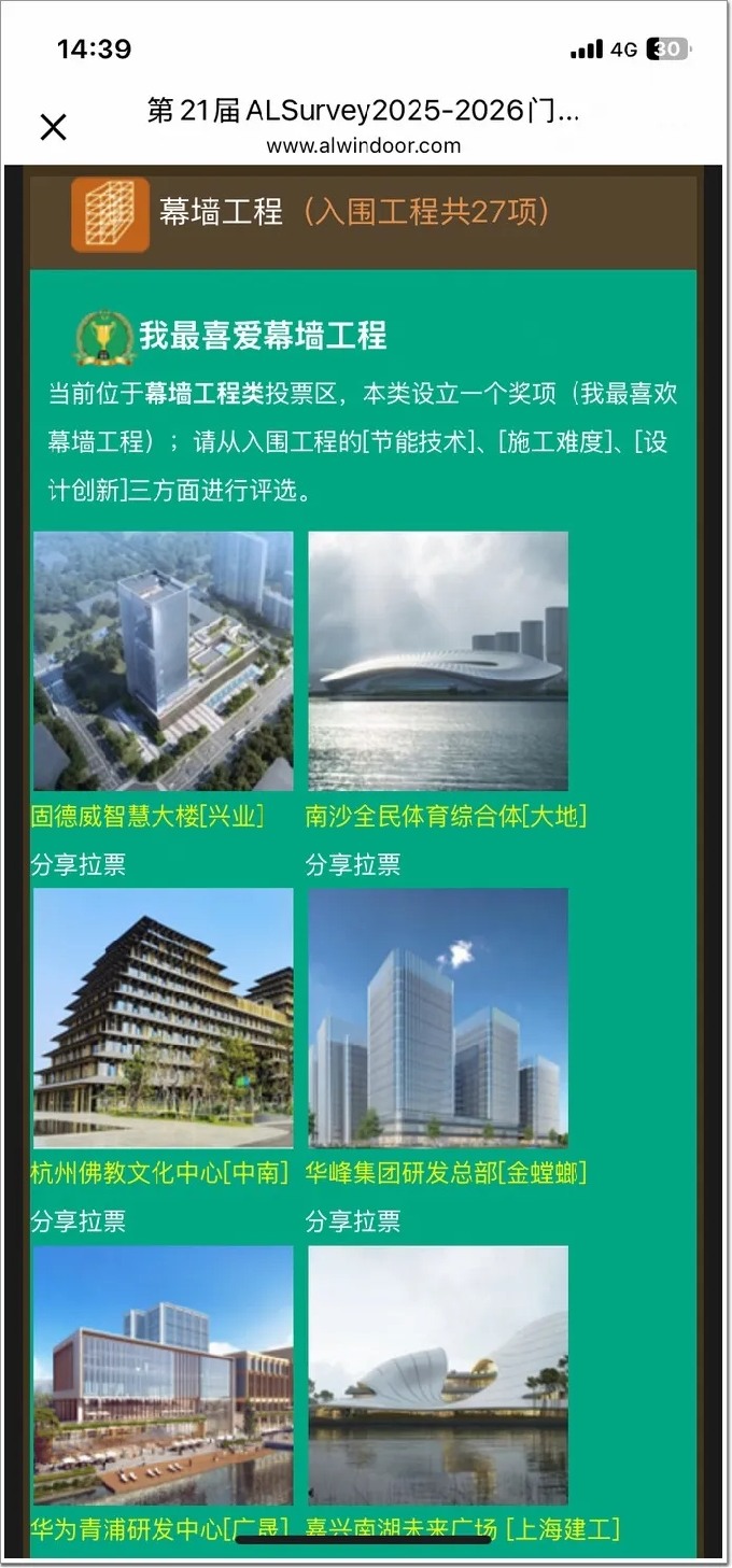 Step2、參與“幕墻工程”投票,選中“我最喜歡幕墻工程”(綠色圖標)