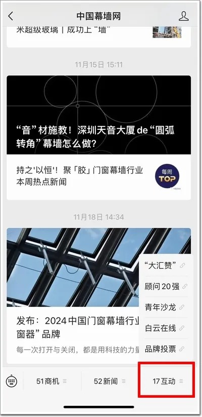 上圖標所示中,可自由切換“入圍的幕墻工程”和“參評的企業類型”,為心儀的工程和品牌投票。