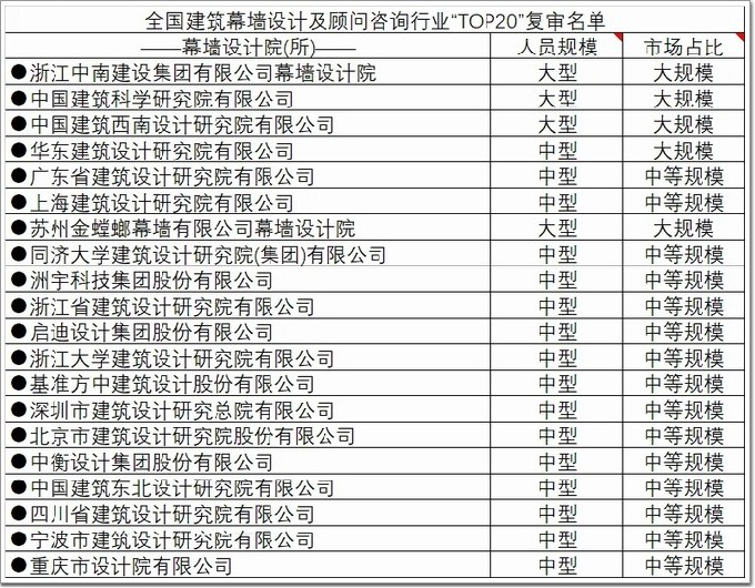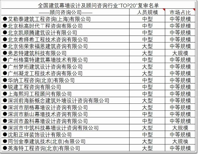 * 幕墻設計及顧問咨詢行業”20強評選獨立開展,此處僅為展示
