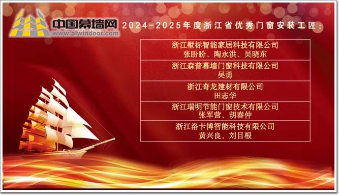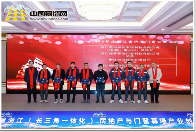 獲得“2024-2025年度浙江省優(yōu)秀門窗安裝工匠”的是:浙江墅標(biāo)智能家居科技有限公司張盼盼、陶永洪、吳曉東;浙江森普幕墻門窗科技有限公司吳勇;