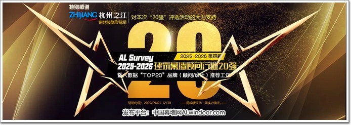 選優、評優、示優|本次評選活動以行業大數據統計工作為重要基礎,配合行業推薦、業績展播、技術展示、專家評審、網絡投票等環節,由中國幕墻網ALwindoor.com組織開展的“2025-2026第四屆建筑幕墻顧問行業20強”評測活動,在杭州之江“金鼠牌”高性能建筑膠的大力支持下,旨在更好的激發幕墻設計及顧問咨詢創新活力,深化產業鏈上、下游之間的誠信體系建設、信息傳播與品牌互動。