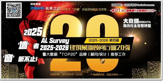 “2025-2026年度第四屆全國幕墻設計及顧問咨詢行業‘20強’名單”的發布,不僅是行業的一次盛會,更是對優秀幕墻設計及顧問團隊的肯定和鼓勵。