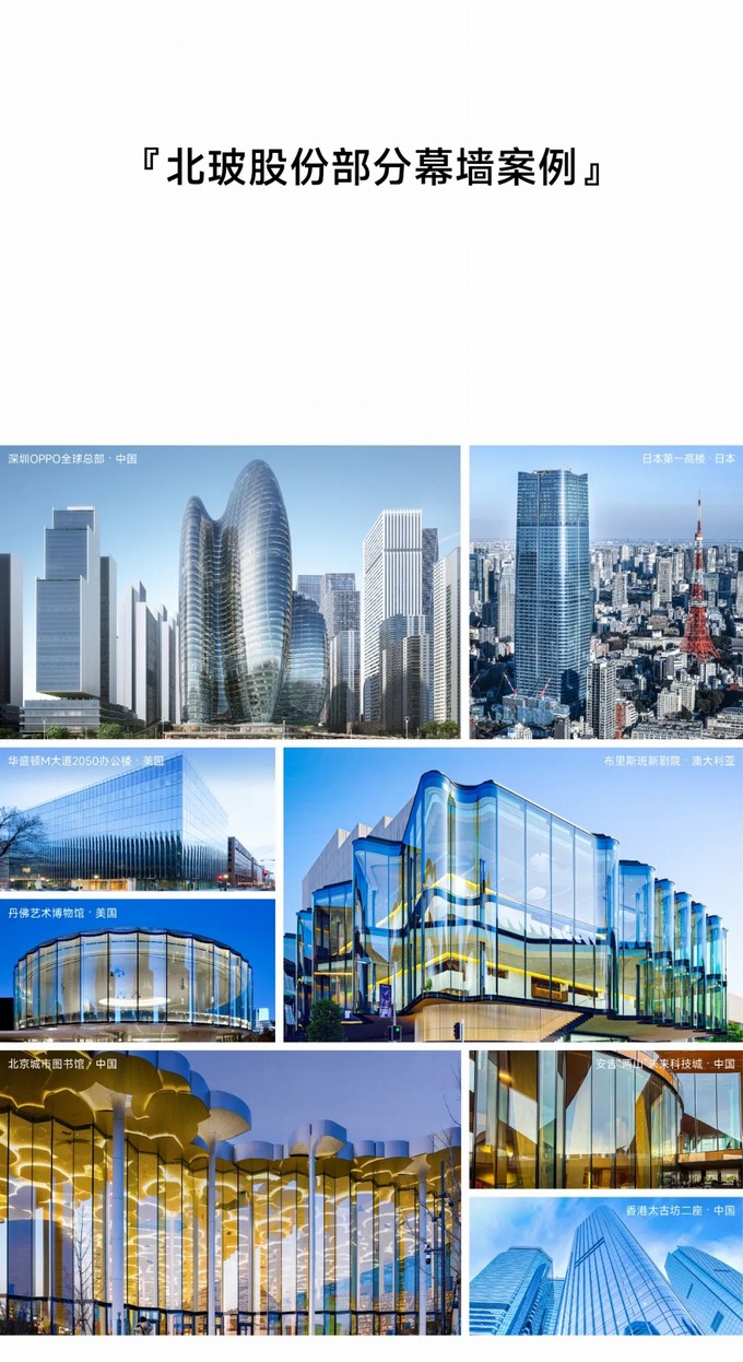 在演講中,李春超闡釋了 “標準的是產品,不標準的是藝術”的深層內涵,如果說技術突破定義了玻璃的物理性能邊界,那么對美學極限的追求則定義了其在建筑藝術中的表現力。北玻的使命不僅是制造玻璃,更是幫助建筑師實現其最大膽的構想。這要求企業必須具備將“非標準化的創新”轉化為“高標準工程現實”的能力。北玻的實踐遍布全球:從國家大劇院、蘋果總部到華為總部,從創吉尼斯世界紀錄的泰康大廈幕墻玻璃,到北京城市副中心圖書館重達11.5噸、自承重的超大玻璃。近期為深圳OPPO全球總部提供的近7萬平方米包含大量多曲、反彎、馬鞍形等復雜形態的曲面玻璃,更是將加工精度與工藝難度推向極致。每一個地標項目,都是北玻跨越標準化生產,在復雜造型、超大尺度、極高精度等維度上,對玻璃美學邊界的成功探索。