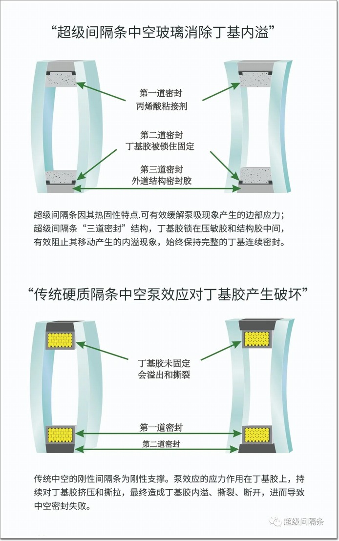 超級間隔條中空玻璃從密封結構分“三道密封系統”和“雙道密封系統”。