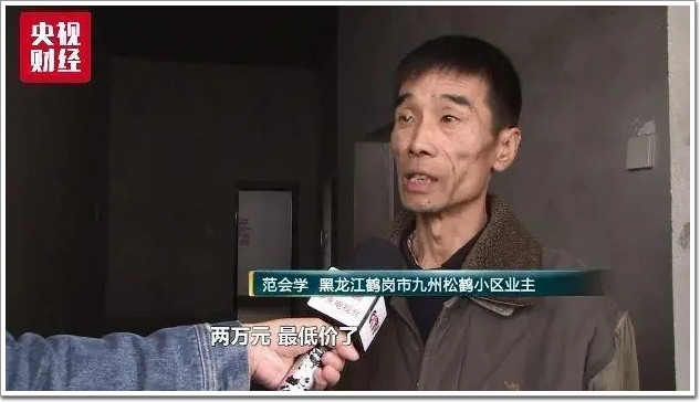 在黑龍江鶴崗市的一個(gè)小區(qū),記者見到了一戶正在售賣樓房的業(yè)主。