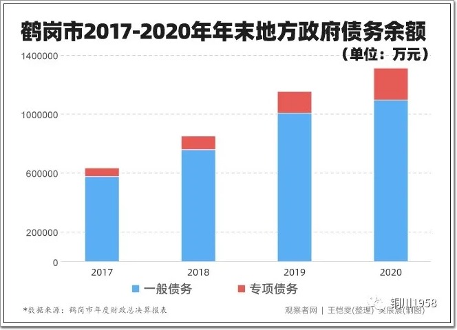 2020年末,鶴崗市地方政府債務(wù)余額131.1億元(其中,一般債務(wù)109.9億元,專項(xiàng)債務(wù)21.7億元),比上年增加15.9億元(其中,一般債務(wù)增加8.8億元,專項(xiàng)債務(wù)增加7億元)。