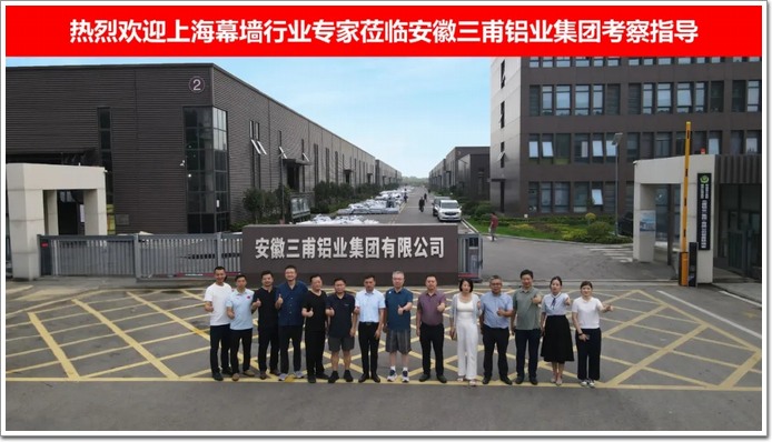 皖滬相連,在門窗幕墻行業(yè)與鋁板產(chǎn)業(yè)的交流合作中,一直有著深厚的淵源和緊密的聯(lián)系!518上海幕墻”專家團(tuán)一行,與安徽三甫鋁業(yè)高層等在綠色工廠前合影留念。