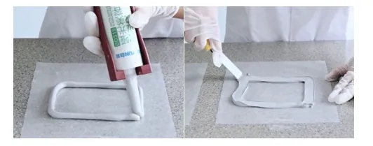 圖2 制樣示意:將密封膠在薄膜上打成口字型,并用鏟刀刮平