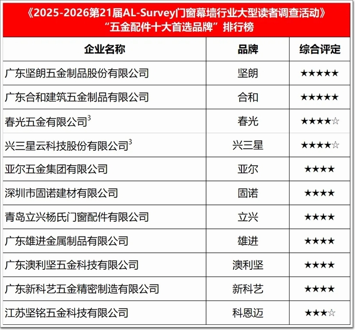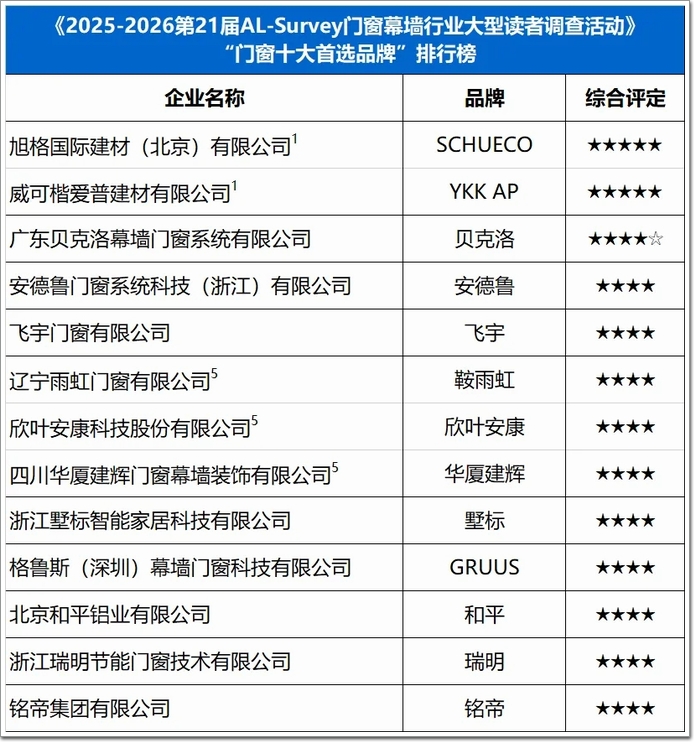 2025-2026第21屆門窗幕墻行業大型讀者調查活動