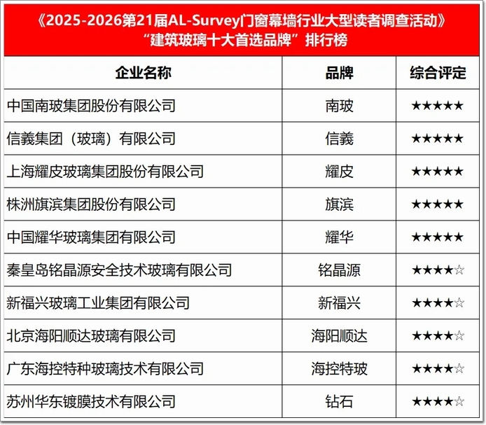 “建筑玻璃首選品牌”年度榜單⇧