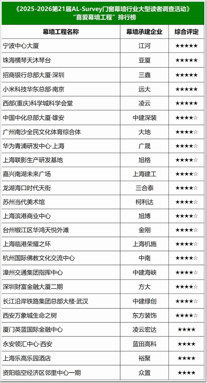 “我最喜愛幕墻工程”年度榜單⇧