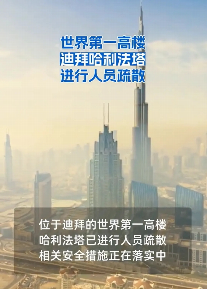 受此影響,當?shù)貢r間28日,位于迪拜的世界第一高樓哈利法塔已進行人員疏散,相關(guān)安全措施正在落實中。