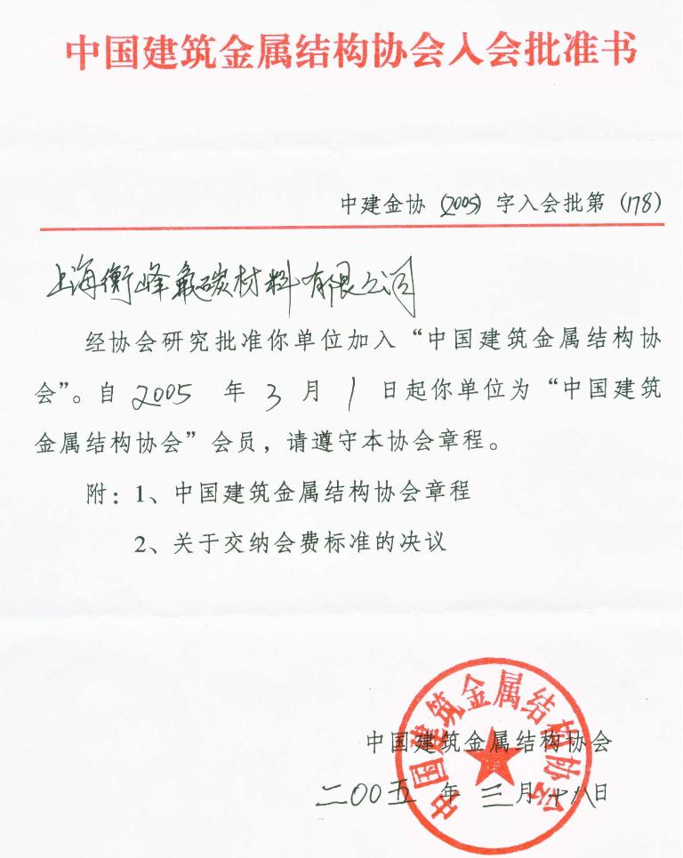 中國建筑金屬結(jié)構(gòu)會員證書 |