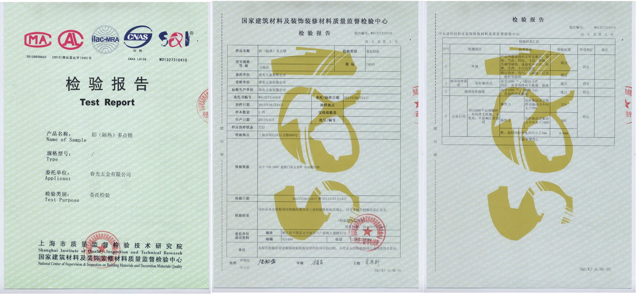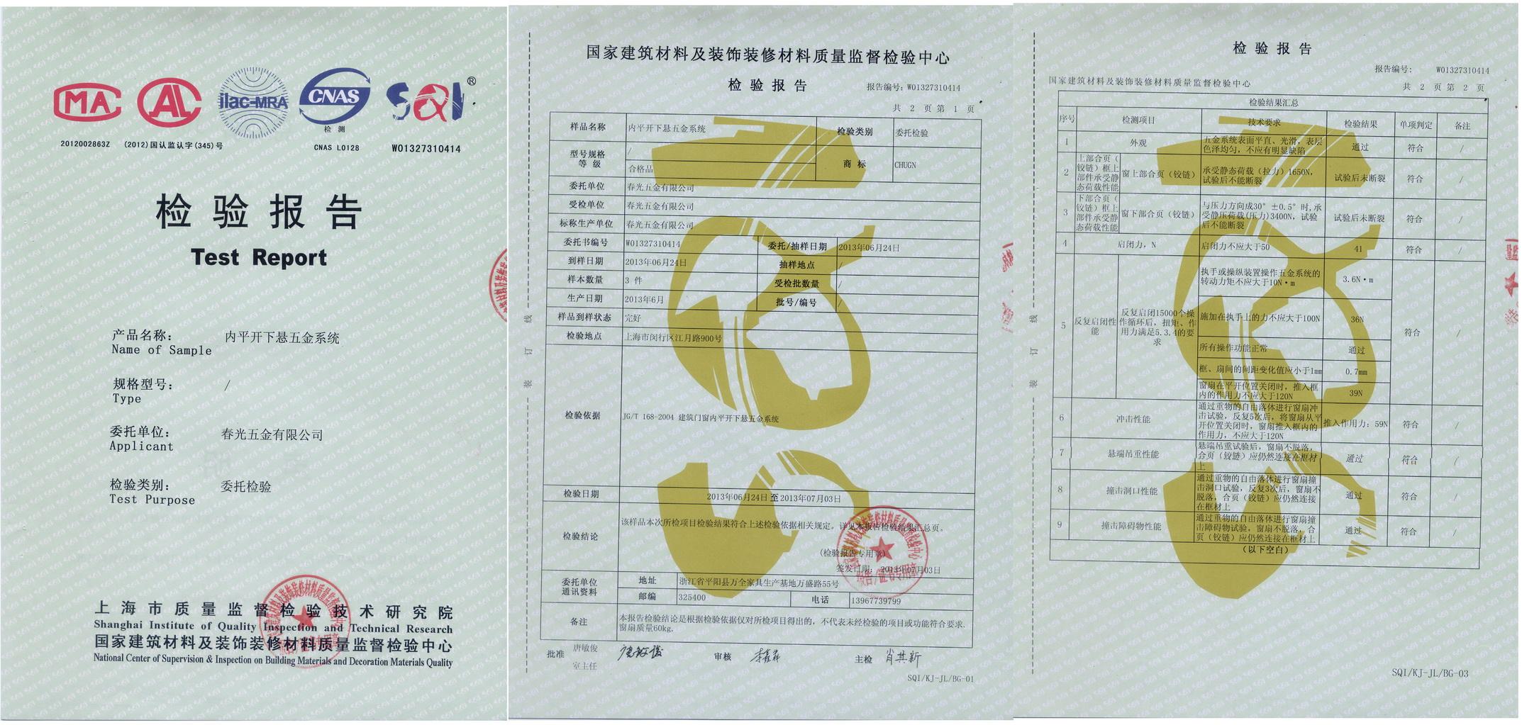 內(nèi)平開下懸五金系統(tǒng)檢驗報告 |