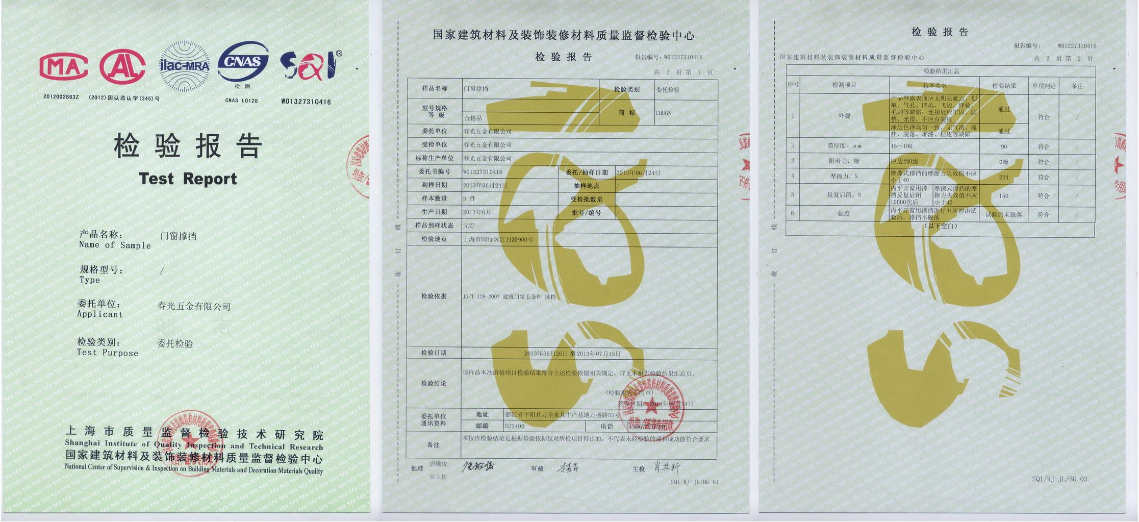 門窗撐擋檢驗報告 |